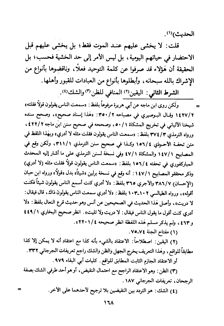 الشرط الثاني: اليقين المنافي للظن والشك.