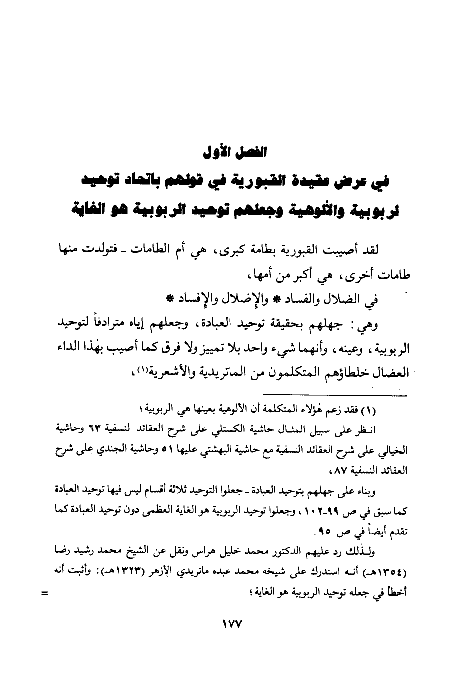 في عرض عقيدة القبورية في قولهم باتحاد توحيد الربوبية والألوهية وجعلهم توحيد الربوبية هو الغاية