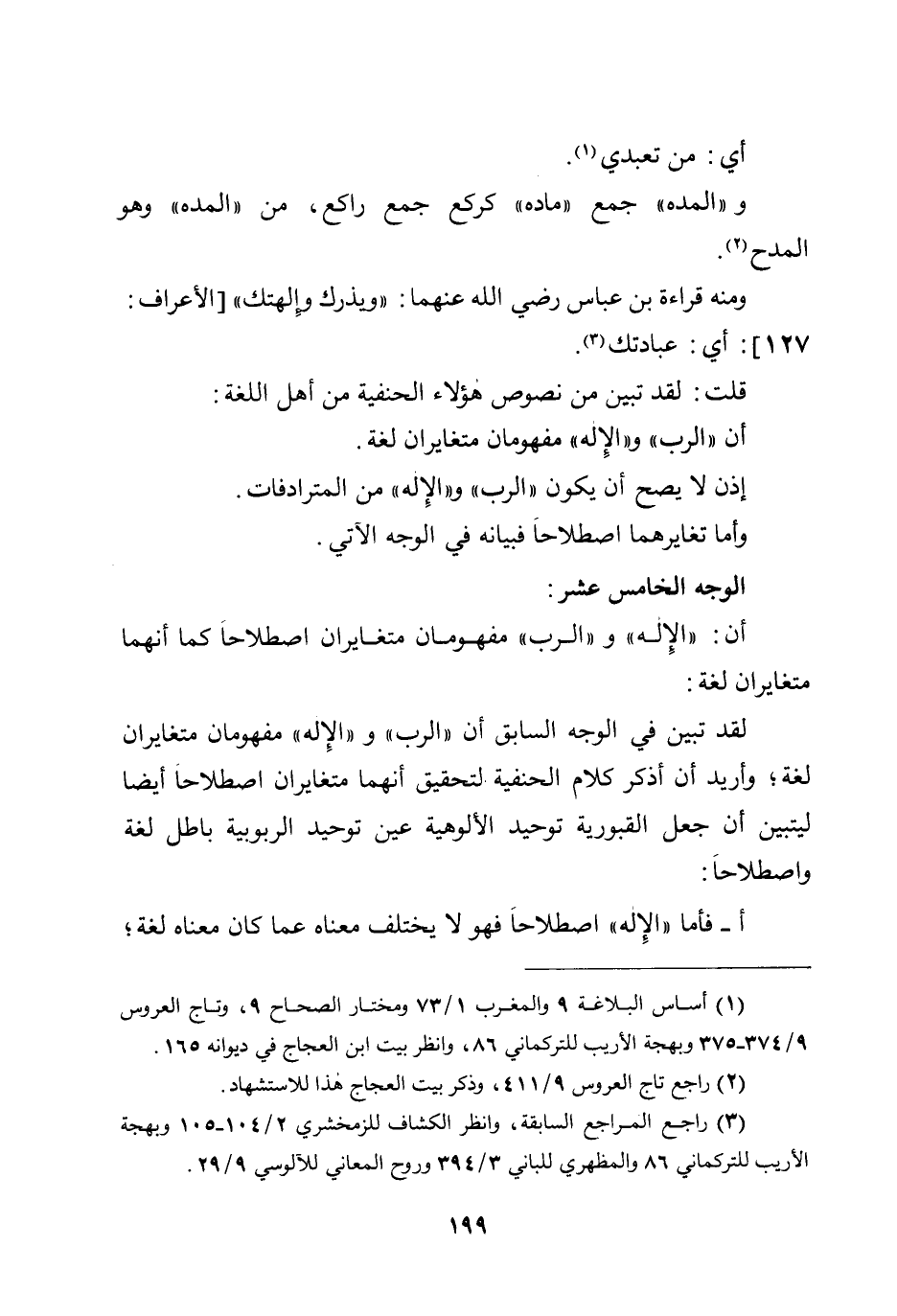 لقد تبين في الوجه السابق أن ((الرب)) و ((الإله)) مفهومان متغايران لغة؛ وأريد أن أذكر كلام الحنفية لتحقيق أنهما متغايران اصطلاحا أيضًا ليتبين أن جعل القبورية توحيد الألوهية عين توحيد الربوبية باطل لغة واصطلاحًا:
