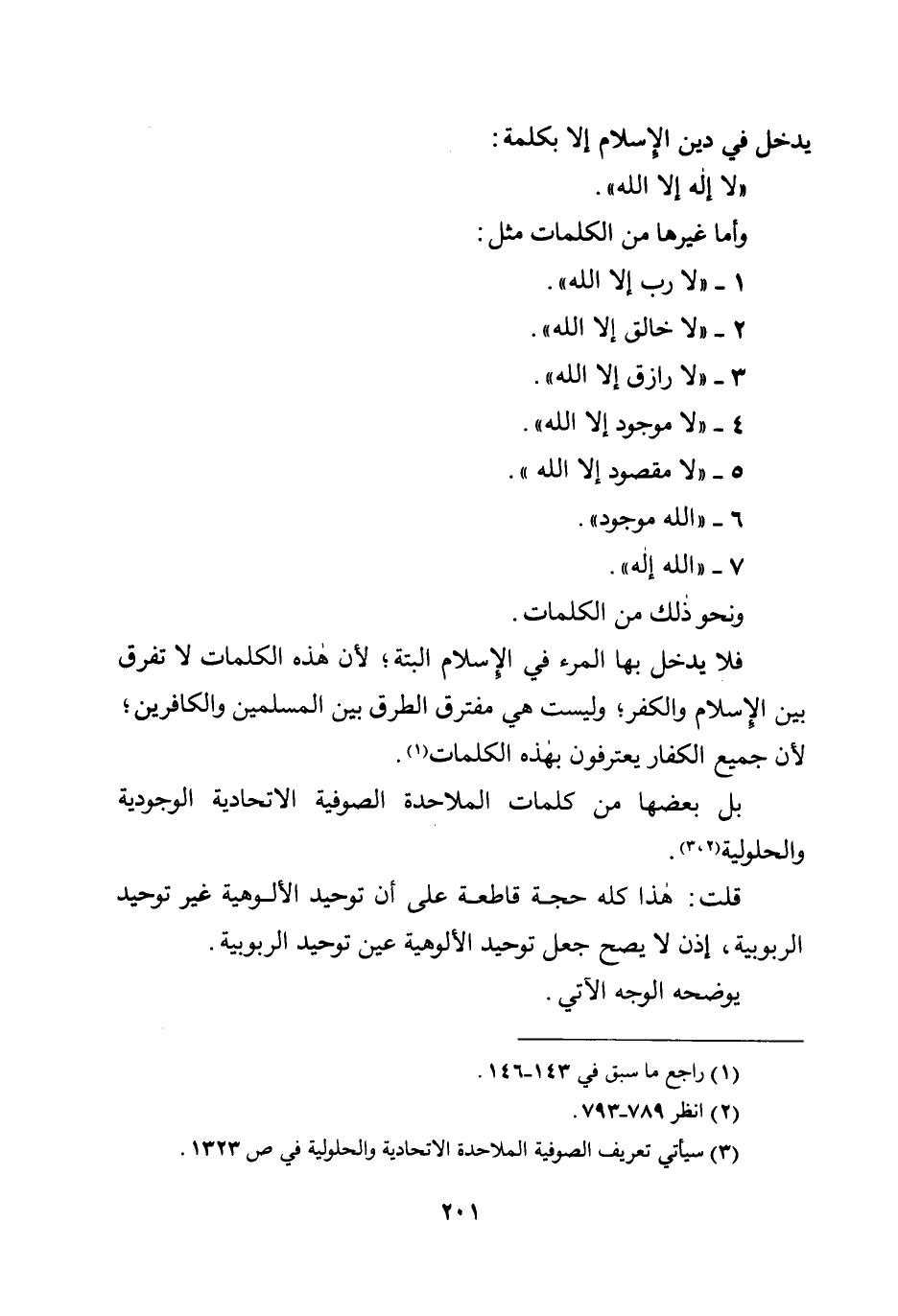 فلا يدخل بها المرء في الإسلام البتة؛ لأن هذه الكلمات لا تفرق بين الإسلام والكفر؛ وليست هي مفترق الطرق بين المسلمين والكافرين؛ لأن جميع الكفار يعترفون بهذه الكلمات.