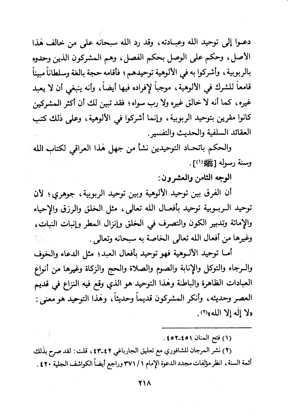 والحكم باتحاد التوحيدين نشأ من جهل هذا العراقي لكتاب الله وسنة رسوله [صلى الله عليه وسلم] .