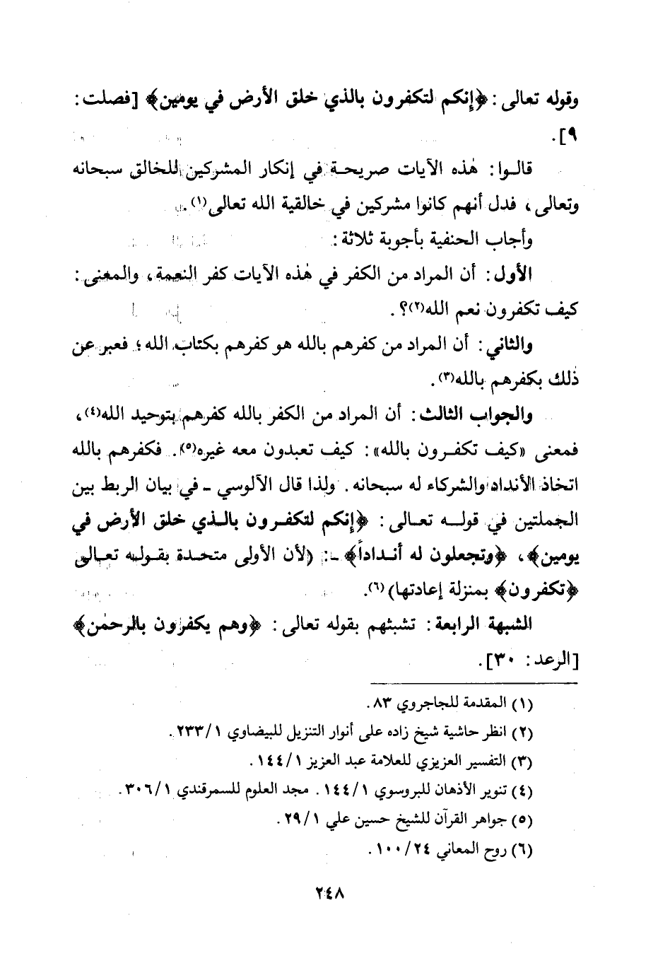 وقوله تعالى: {أَئِنَّكُمْ لَتَكْفُرُونَ بِالَّذِي خَلَقَ الْأَرْضَ فِي يَوْمَيْنِ} [فصلت: 9] .