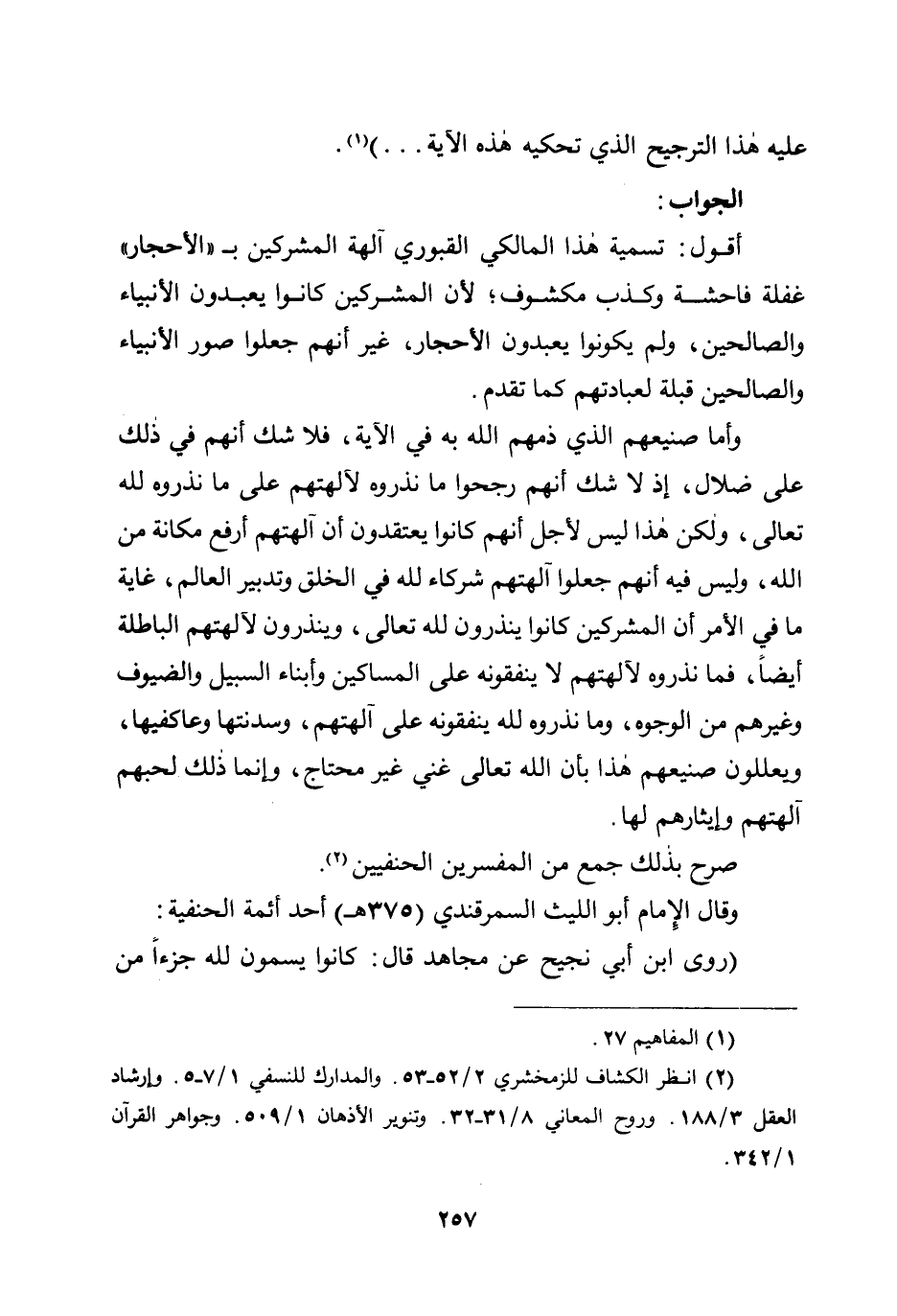 أقول: تسمية هذا المالكي القبوري آلهة المشركين بـ ((الأحجار)) غفلة فاحشة وكذب مكشوف؛ لأن المشركين كانوا يعبدون الأنبياء والصالحين، ولم يكونوا يعبدون الأحجار، غير أنهم جعلوا صور الأنبياء والصالحين قبلة لعبادتهم كما تقدم.