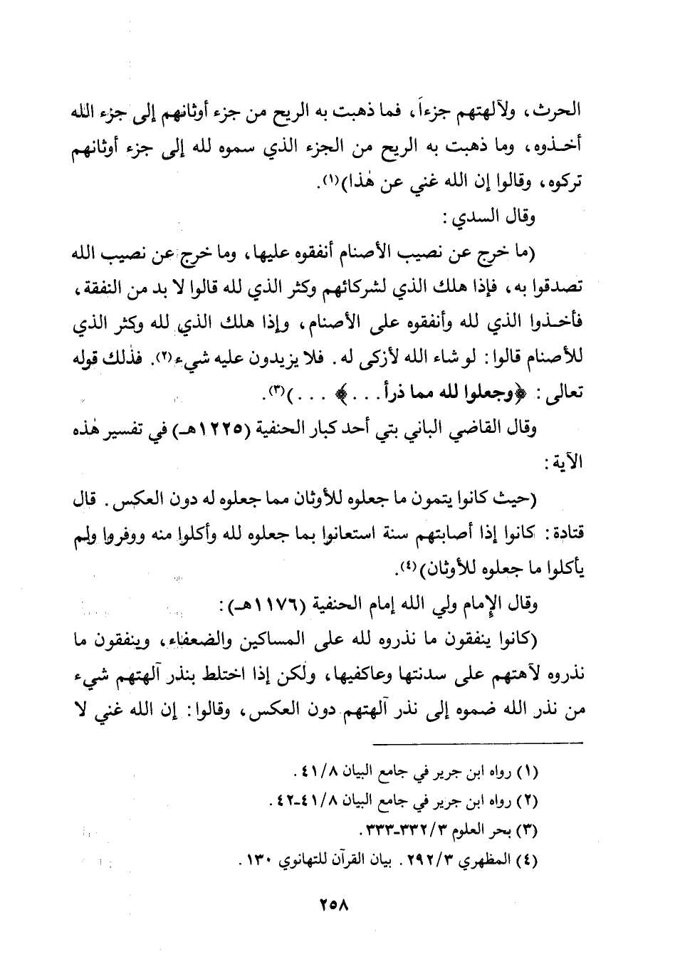 الحرث، ولآلهتهم جزءًا، فما ذهبت به الريح من جزء أوثانهم إلى جزء الله أخذوه، وما ذهبت به الريح من الجزء الذي سموه لله إلى جزء أوثانهم تركوه، وقالوا إن الله غني عن هذا) .