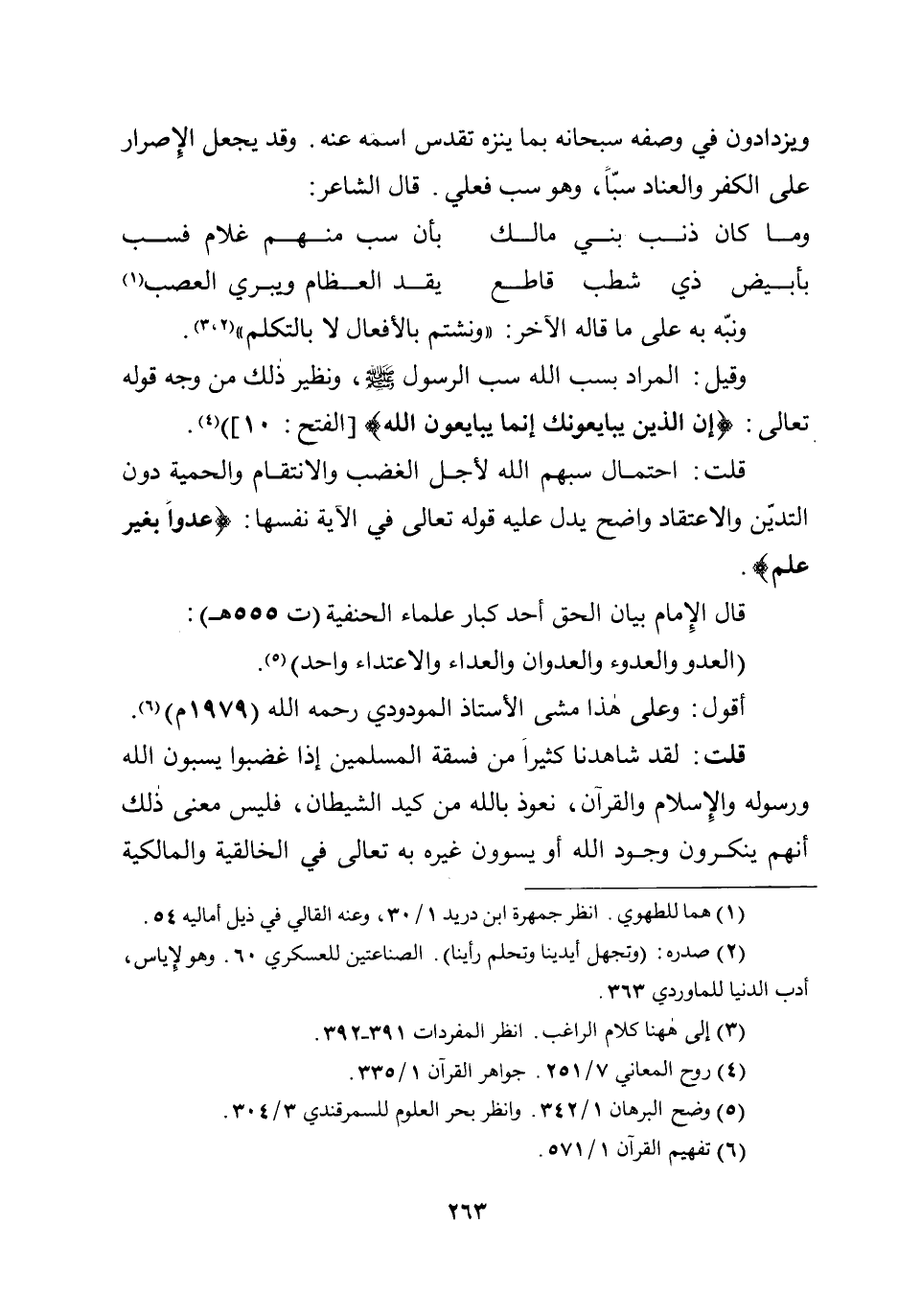 قلت: احتمال سبهم الله لأجل الغضب والانتقام والحمية دون التدين والاعتقاد واضح يدل عليه قوله تعالى في الآية نفسها: {عَدْوًا بِغَيْرِ عِلْمٍ} .