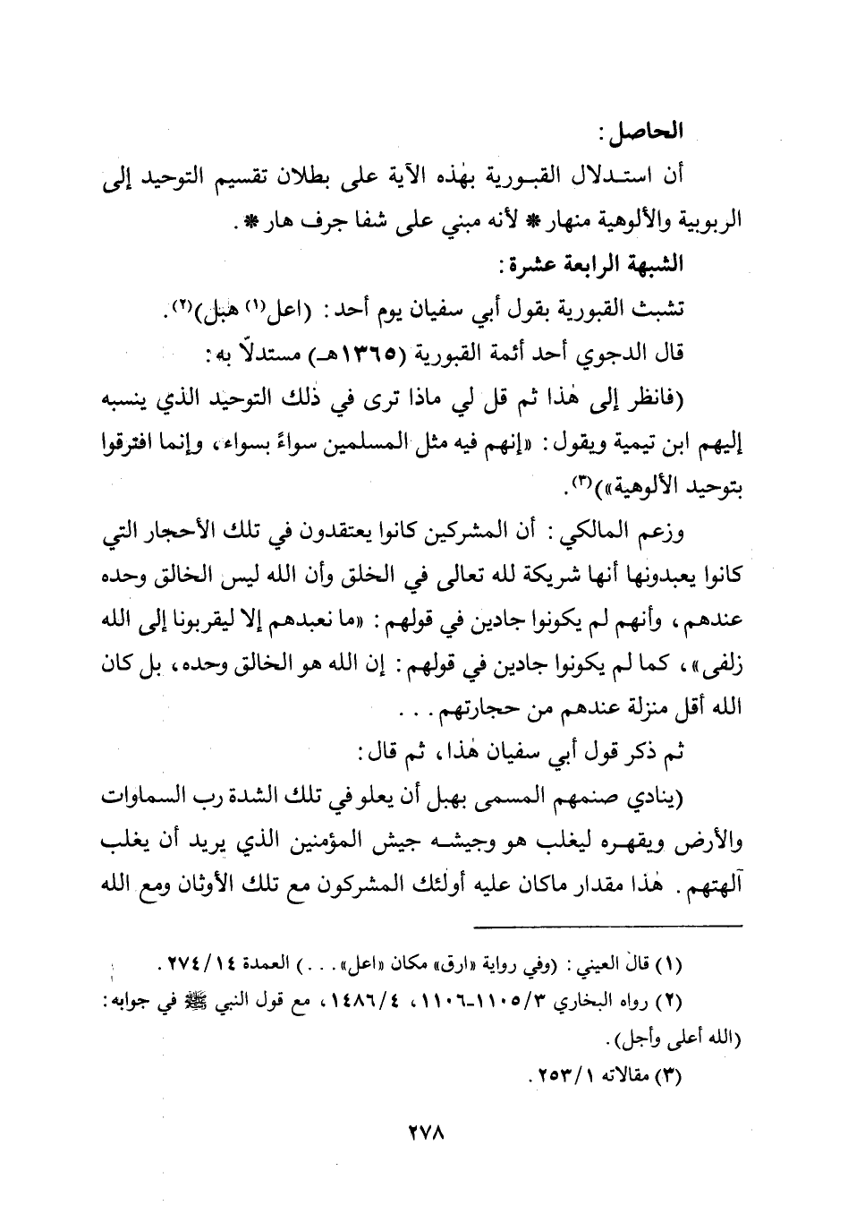 تشبثت القبورية بقول أبي سفيان يوم أحد: (اعل هبل) .