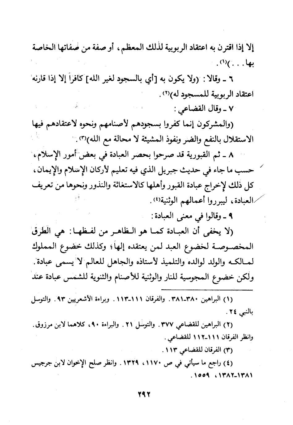 (لا يخفى أن العبادة كما هو الظاهر من لفظها: هي الطرق المخصوصة لخضوع العبد لمن يعتقده إلهًا؛ وكذلك خضوع المملوك لمالكه والولد لوالده والتلميذ لأستاذه والجاهل للعالم لا يسمى عبادة.