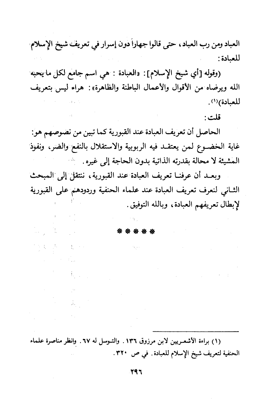 وبعد أن عرفنا تعريف العبادة عند القبورية، ننتقل إلى المبحث الثاني لنعرف تعريف العبادة عند علماء الحنفية وردودهم على القبورية لإبطال تعريفهم العبادة، وبالله التوفيق.