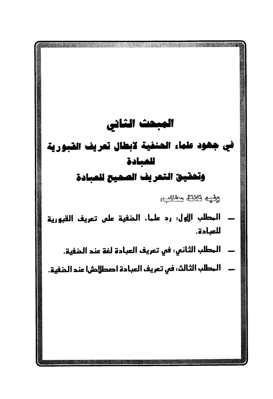 - المطلب الأول: رد علماء الحنفية على تعريف القبورية للعبادة.