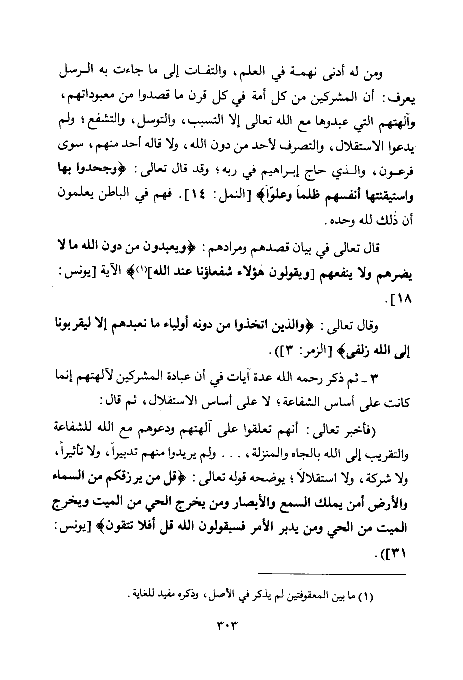 3 - ثم ذكر رحمه الله عدة آيات في أن عبادة المشركين لآلهتهم إنما كانت على أساس الشفاعة؛ لا على أساس الاستقلال، ثم قال: