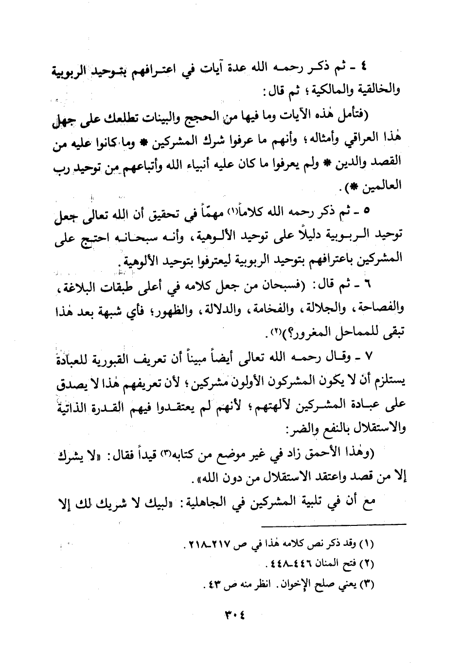5 - ثم ذكر رحمه الله كلامًا مهما في تحقيق أن الله تعالى جعل توحيد الربوبية دليلًا على توحيد الألوهية، وأنه سبحانه احتج على المشركين باعترافهم بتوحيد الربوبية ليعترفوا بتوحيد الألوهية.
