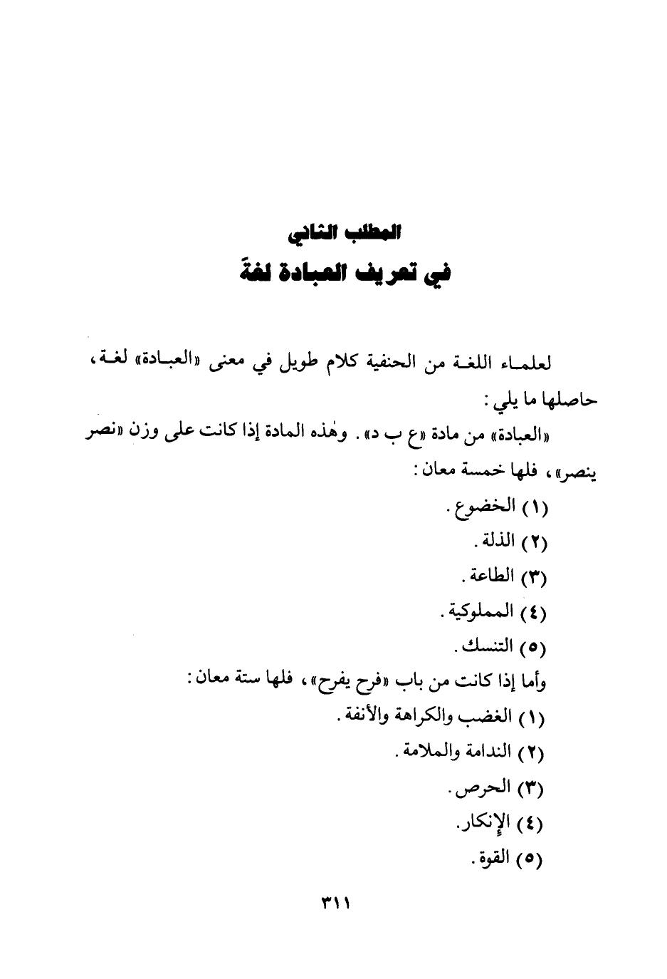 لعلماء اللغة من الحنفية كلام طويل في معنى ((العبادة)) لغة، حاصلها ما يلي:
