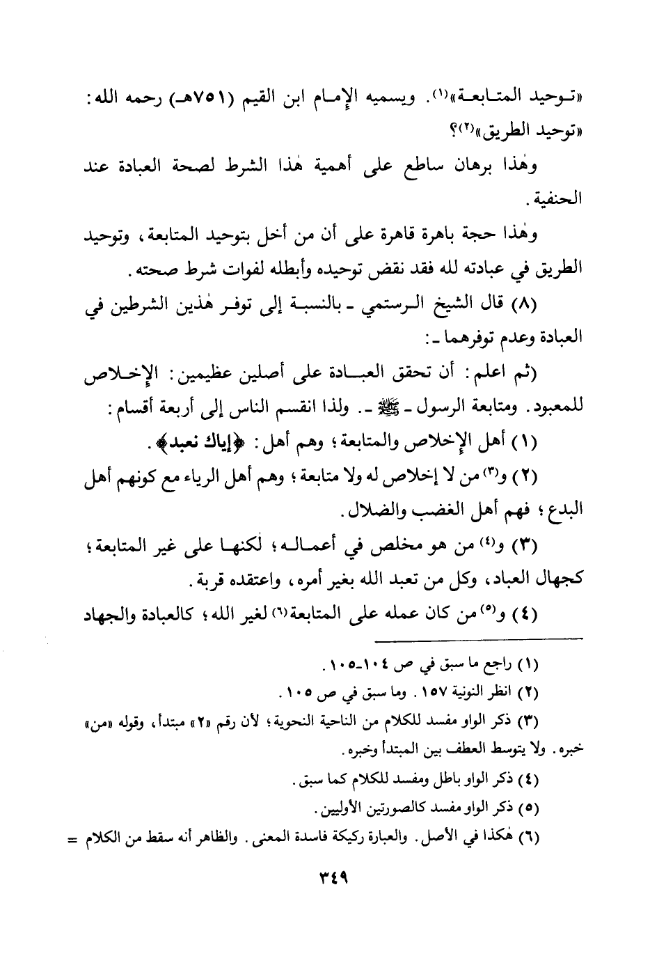 ((توحيد المتابعة)) ، ويسميه الإمام ابن القيم (751هـ) رحمه الله: ((توحيد الطريق)) .