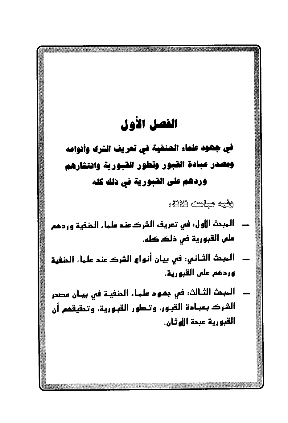 - المبحث الأول: في تعريف الشرك عند علماء الحنفية وردهم على القبورية في ذلك كله.