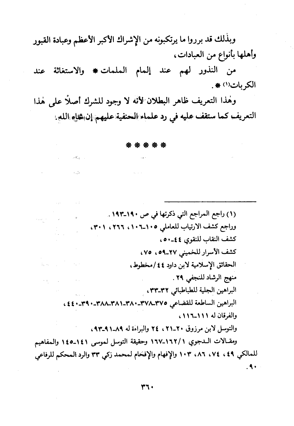 وبذلك قد برروا ما يرتكبونه من الإشراك الأكبر الأعظم وعبادة القبور وأهلها بأنواع من العبادات، من النذور لهم عند إلمام الملمات * والاستغاثة عند الكربات *.