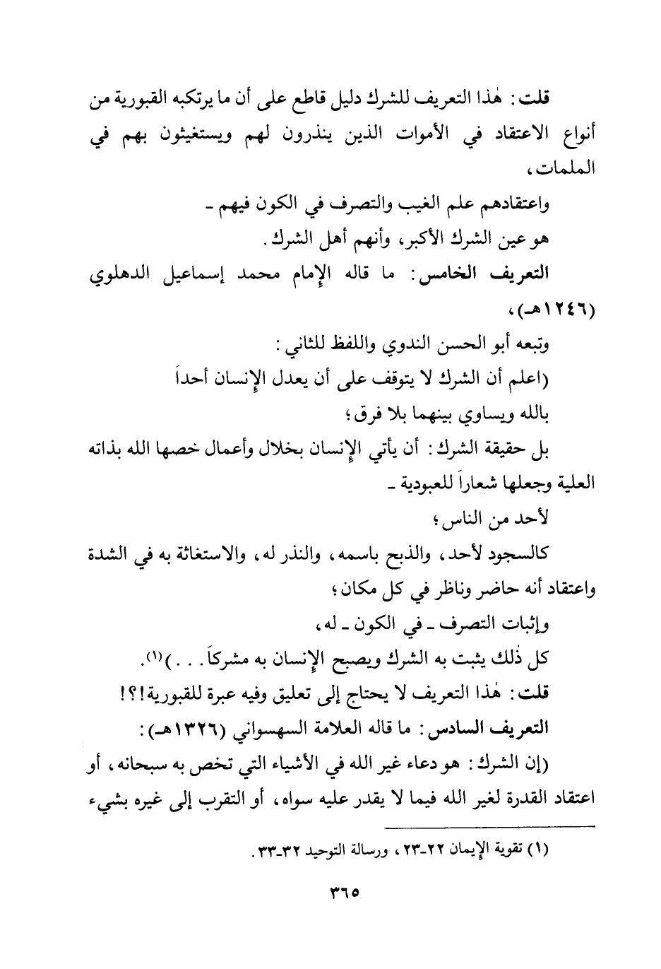 قلت: هذا التعريف لا يحتاج إلى تعليق وفيه عبرة للقبورية!؟!