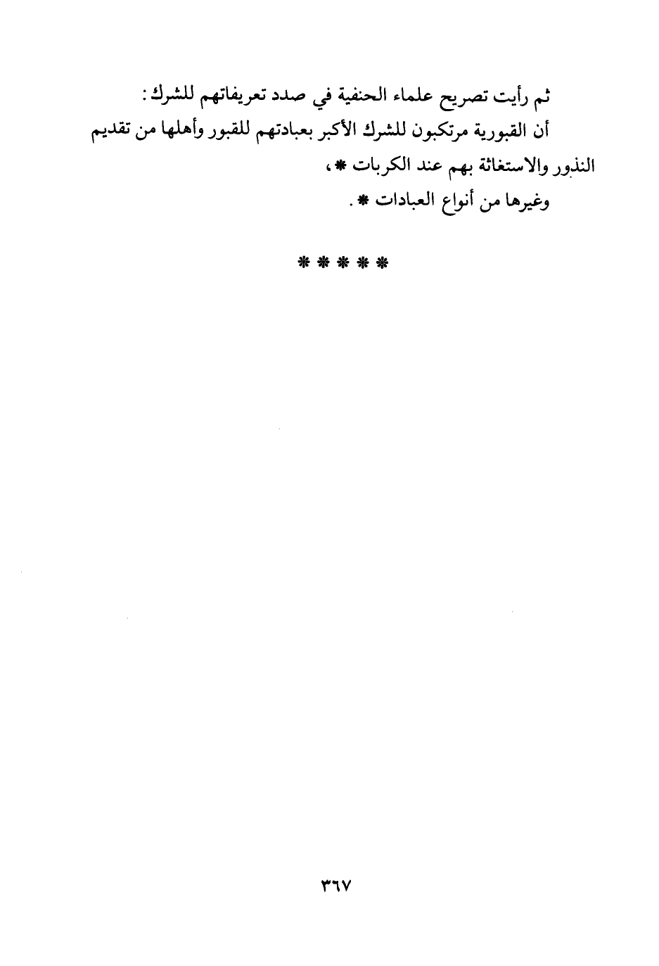 ثم رأيت تصريح علماء الحنفية في صدد تعريفاتهم للشرك: