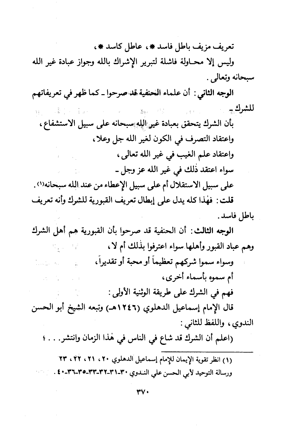 قلت: فهذا كله يدل على إبطال تعريف القبورية للشرك وأنه تعريف باطل فاسد.