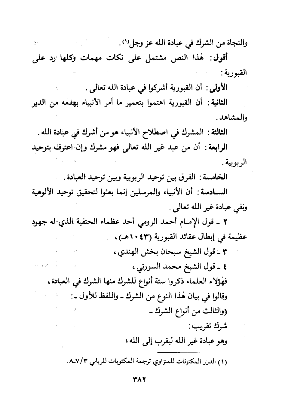 أقول: هذا النص مشتمل على نكات مهمات وكلها رد على القبورية: