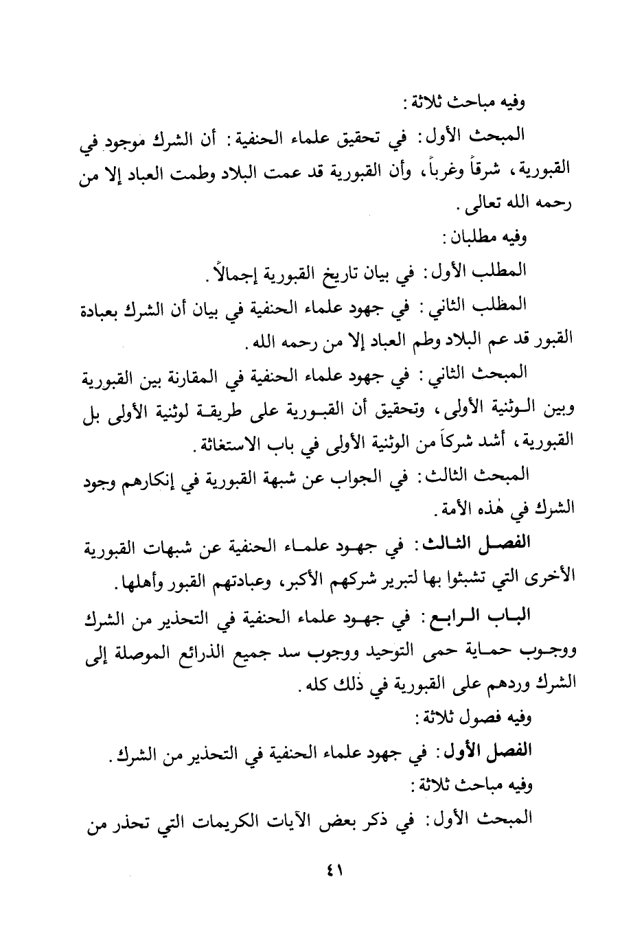 الفصل الثالث: في جهود علماء الحنفية عن شبهات القبورية الأخرى التي تشبثوا بها لتبرير شركهم الأكبر، وعبادتهم القبور وأهلها.