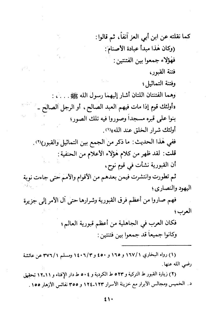 فتنة القبور، وفتنة التماثيل؛ وهما الفتنتان اللتان أشار إليهما رسول الله صلى الله عليه وسلم ... ،: