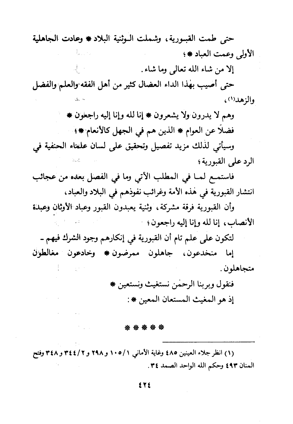 حتى طمت القبورية، وشملت الوثنية البلاد * وعادت الجاهلية الأولى وعمت العباد *؛ إلا من شاء الله تعالى وما شاء.