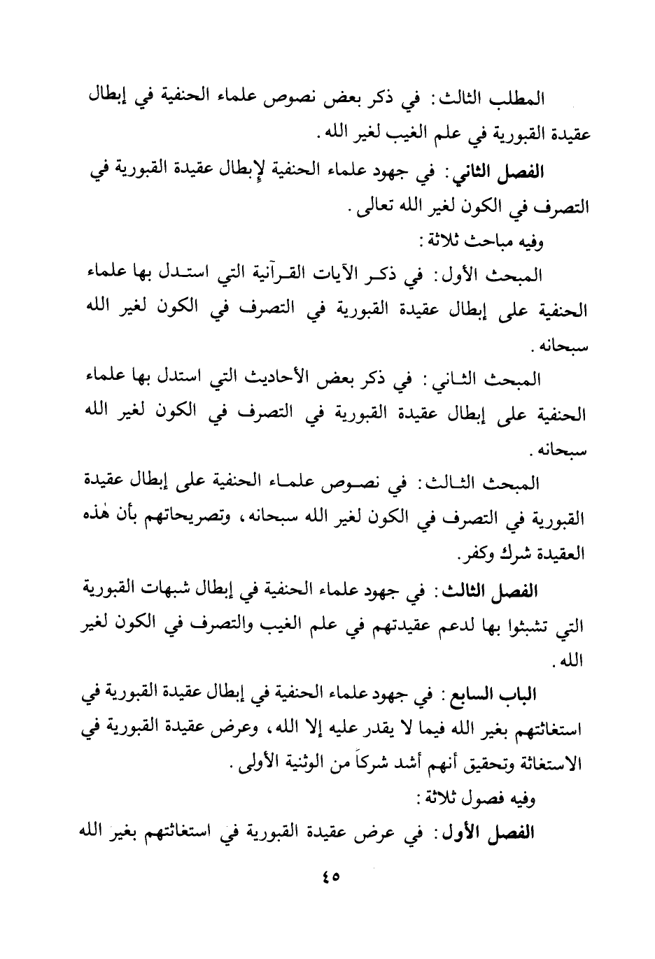 الفصل الثاني: في جهود علماء الحنفية لإبطال عقيدة القبورية في التصرف في الكون لغير الله تعالى.