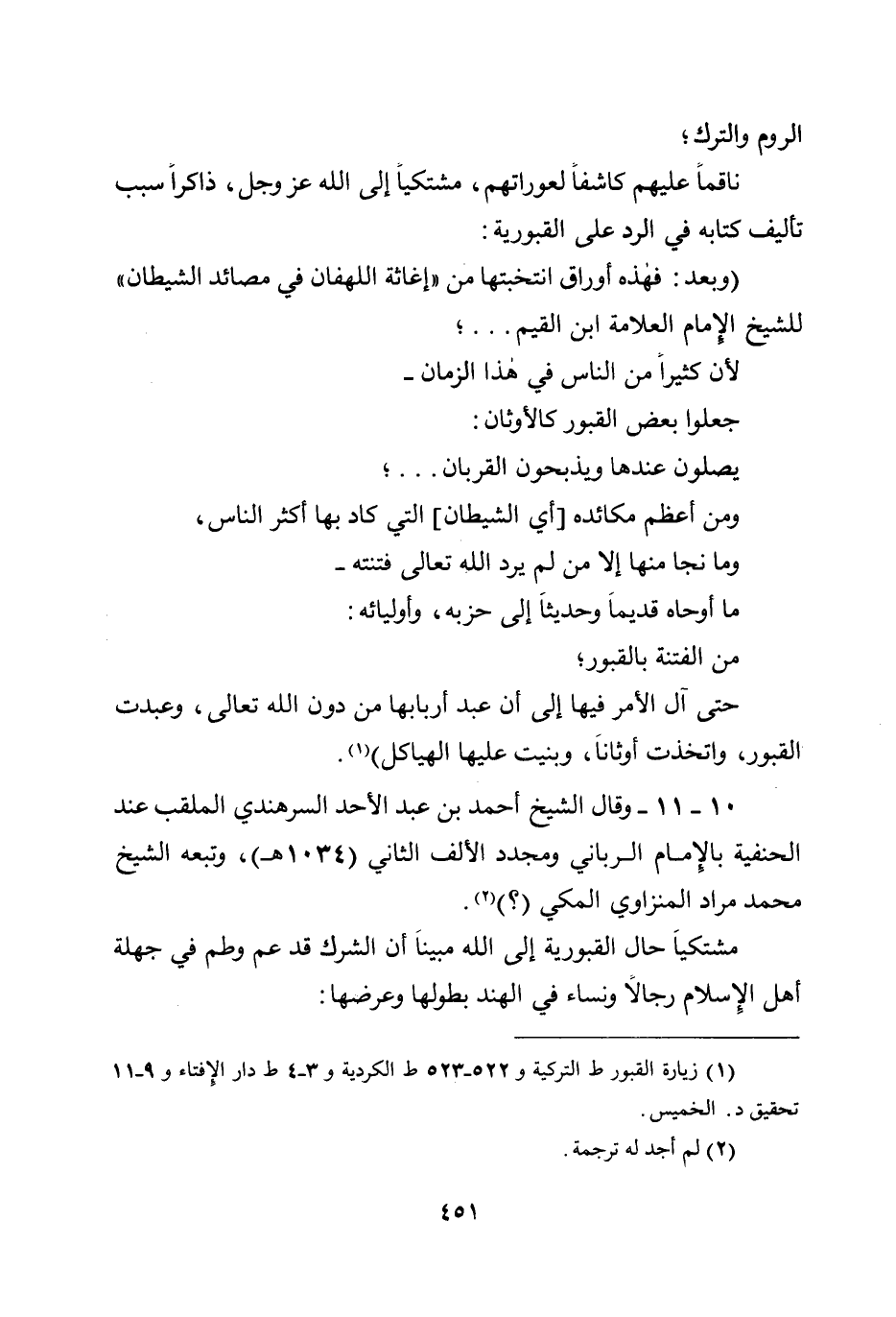 الروم والترك؛ ناقمًا عليهم كاشفًا لعوراتهم، مشتكيًا إلى الله عز وجل، ذاكرًا سبب تأليف كتابه في الرد على القبورية: