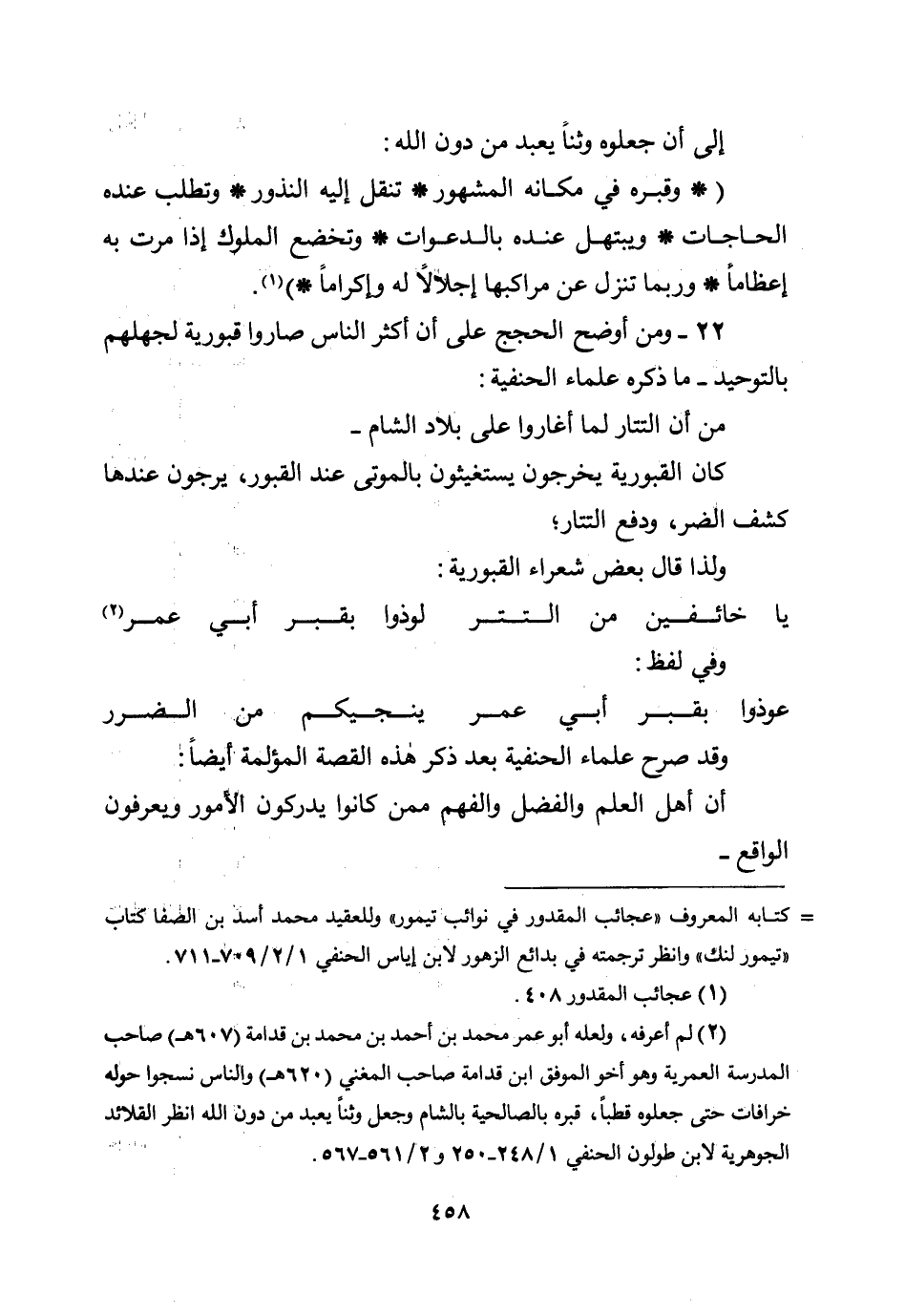22 - ومن أوضح الحجج على أن أكثر الناس صاروا قبورية لجهلهم بالتوحيد - ما ذكره علماء الحنفية: