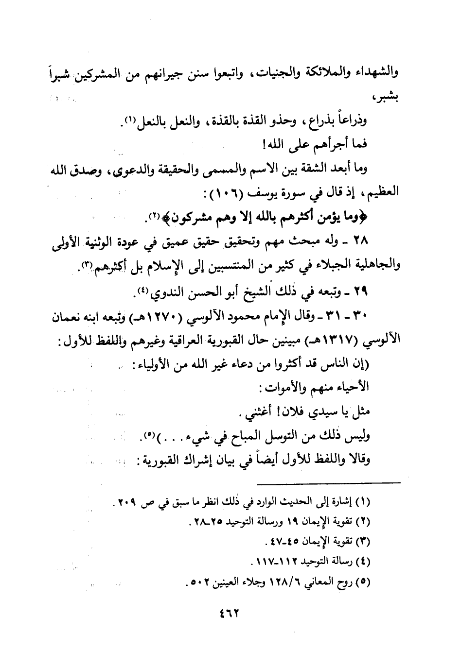 30 - 31 - وقال الإمام محمود الآلوسي (1270هـ) وتبعه ابنه نعمان الآلوسي (1317هـ) مبينين حال القبورية العراقية وغيرهم واللفظ للأول: