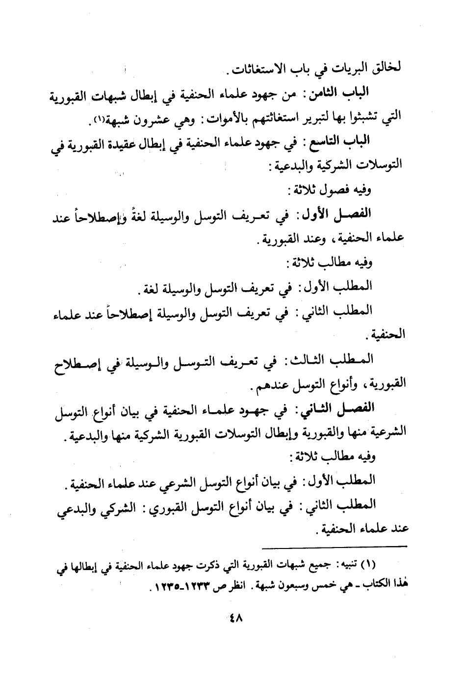 الباب الثامن: من جهود علماء الحنفية في إبطال شبهات القبورية التي تشبثوا بها لتبرير استغاثتهم بالأموات: وهي عشرون شبهة.