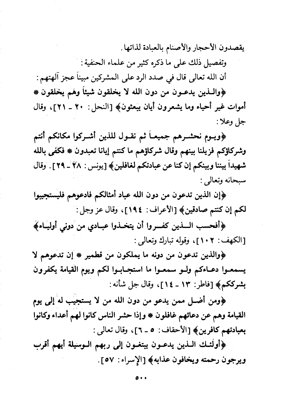 {وَمَنْ أَضَلُّ مِمَّنْ يَدْعُو مِنْ دُونِ اللَّهِ مَنْ لَا يَسْتَجِيبُ لَهُ إِلَى يَوْمِ الْقِيَامَةِ وَهُمْ عَنْ دُعَائِهِمْ غَافِلُونَ وَإِذَا حُشِرَ النَّاسُ كَانُوا لَهُمْ أَعْدَاءً وَكَانُوا بِعِبَادَتِهِمْ كَافِرِينَ} [الأحقاف: 5-6] ، وقال تعالى: