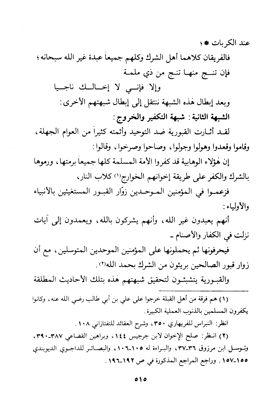 إن هؤلاء الوهابية قد كفروا الأمة المسلمة كلها جميعًا برمتها، ورموها بالشرك والكفر على طريقة إخوانهم الخوارج كلاب النار، فزعموا في المؤمنين الموحدين زوار القبور المستغيثين بالأنبياء والأولياء: