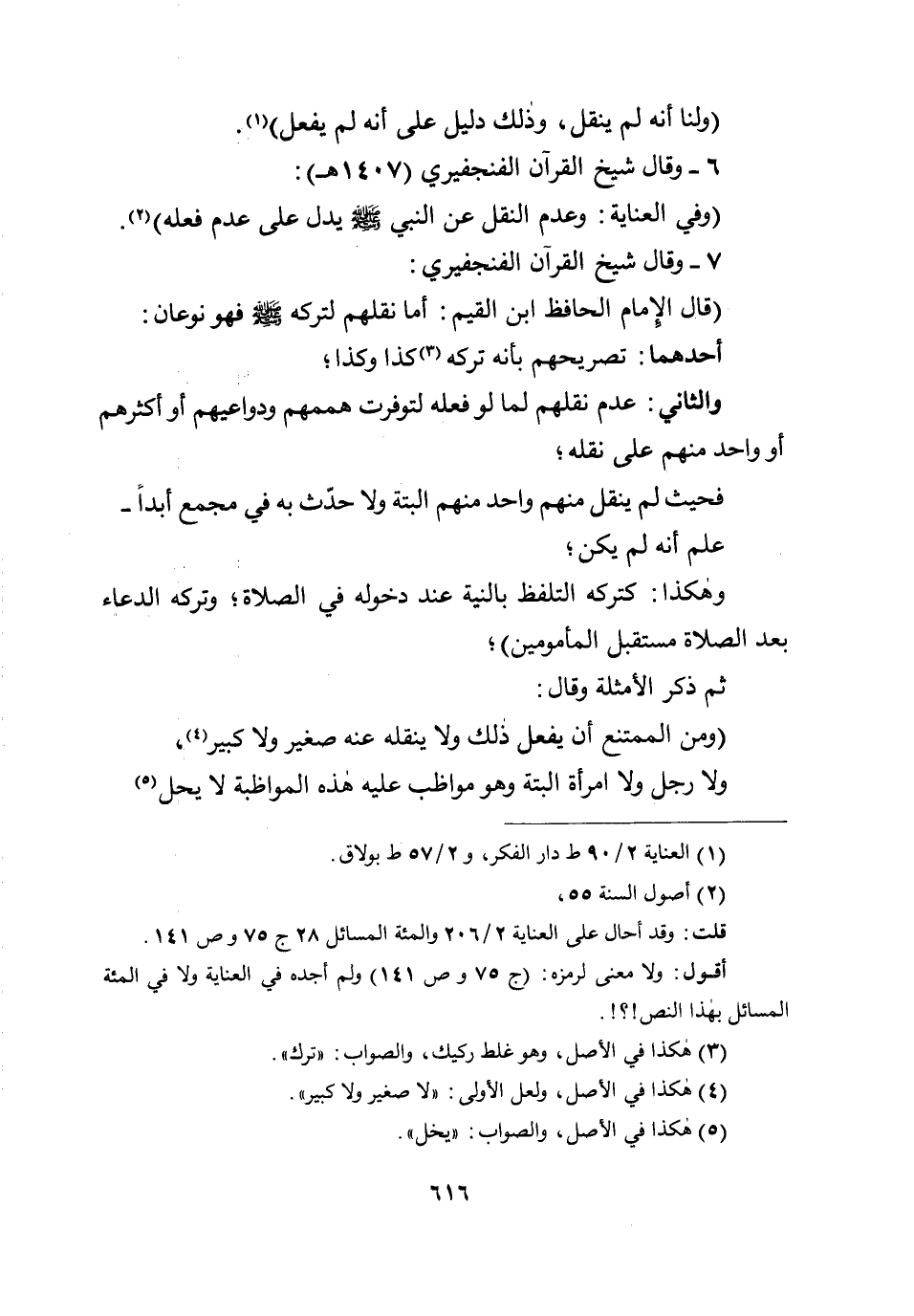 (قال الإمام الحافظ ابن القيم: أما نقلهم لتركه صلى الله عليه وسلم فهو نوعان: