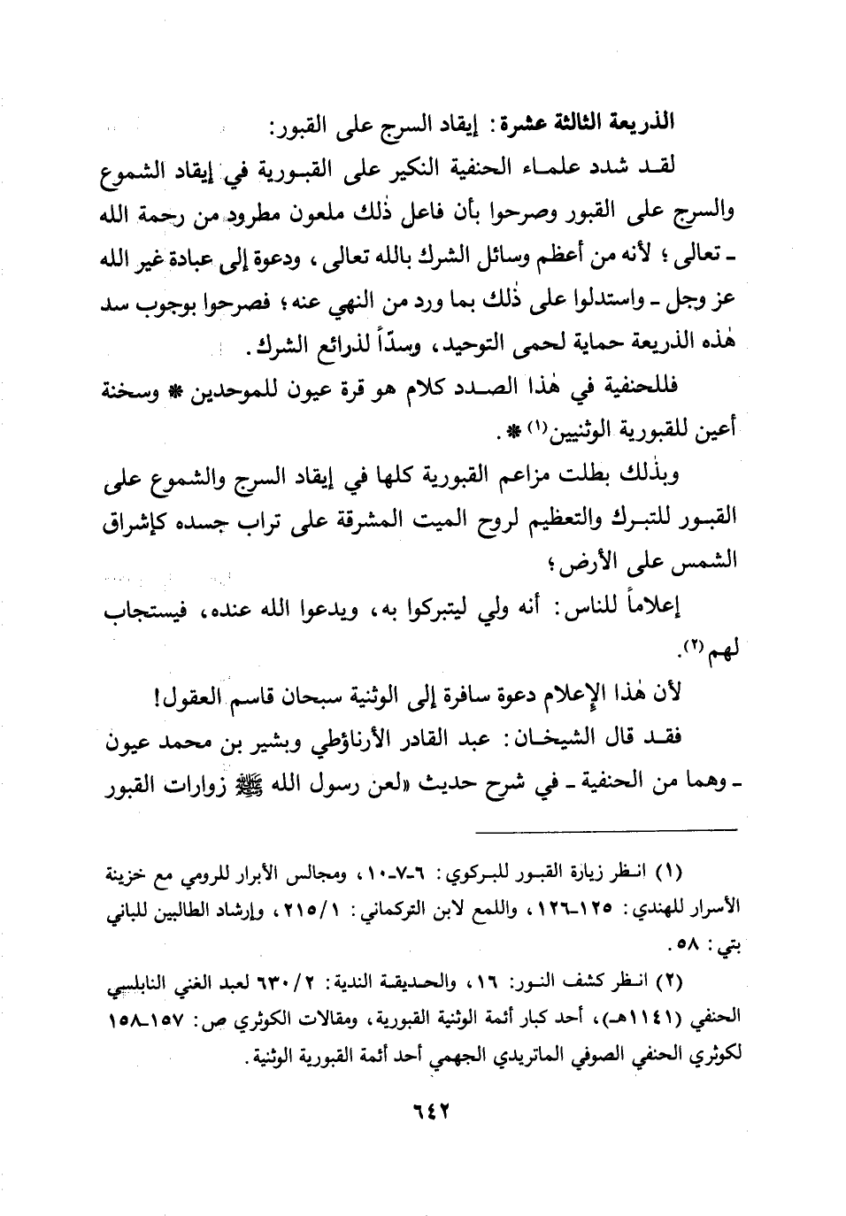 لأن هذا الإعلام دعوة سافرة إلى الوثنية سبحان قاسم العقول! فقد قال الشيخان: عبد القادر الأرناؤطي وبشير بن محمد عيون - وهما من الحنفية- في شرح حديث «لعن رسول الله صلى الله عليه وسلم زوارات القبور»