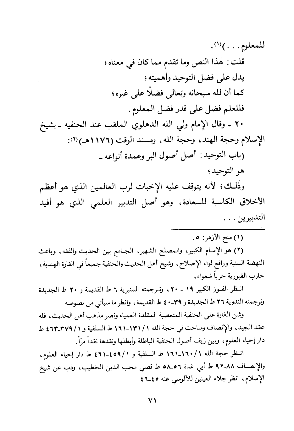 20 - وقال الإمام ولي الله الدهلوي الملقب عند الحنفية بشيخ الإسلام وحجة الهند، وحجة الله، ومسند الوقت (1176هـ) :