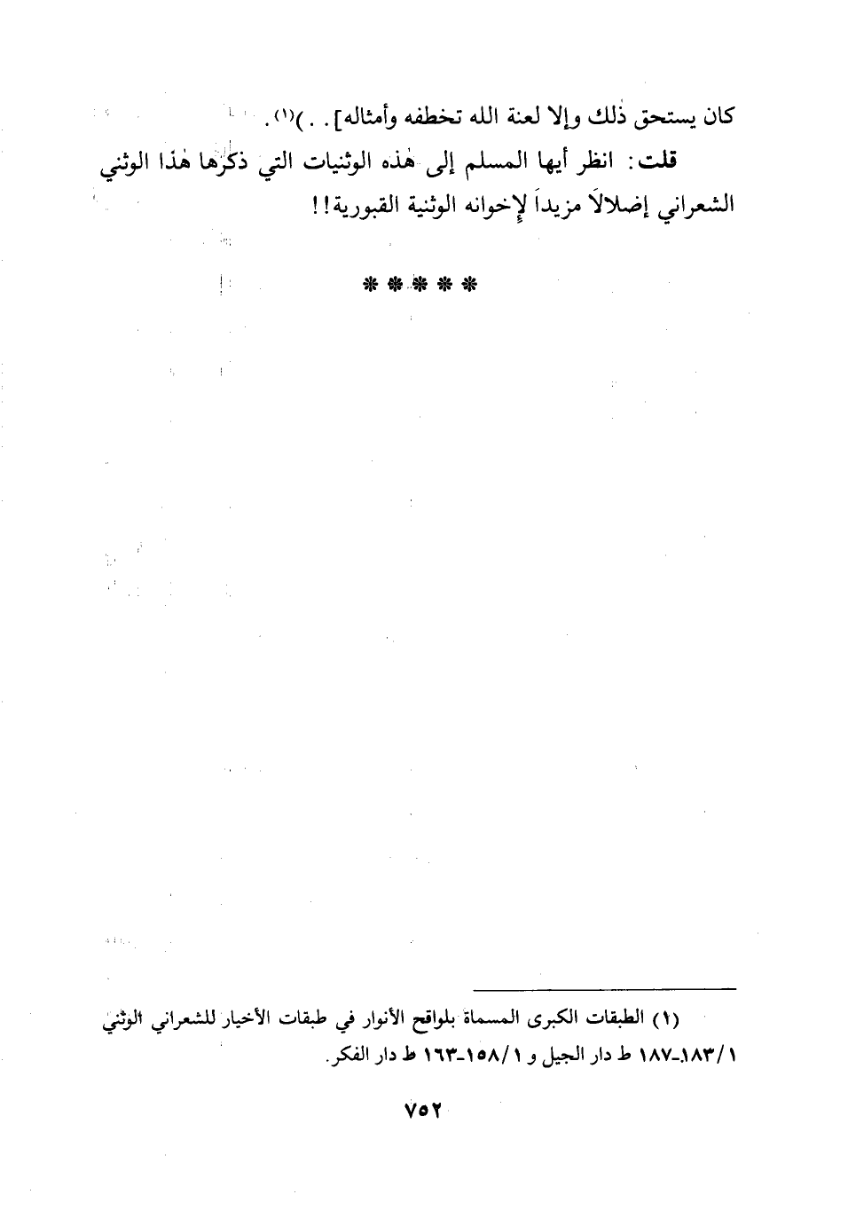 قلت: انظر أيها المسلم إلى هذه الوثنيات التي ذكرها هذا الوثني العشراني إضلالا مزيدا لإخوانه الوثنية القبورية!!