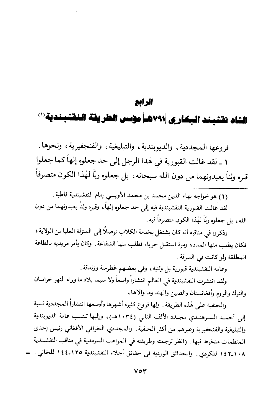 فروعها المجددية، والديوبندية، والتبليغية، والفنجفيرية، ونحوها.
