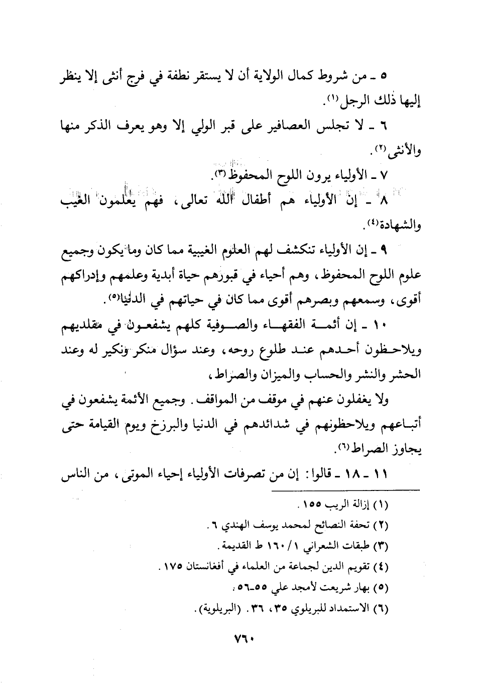 10 - إن أئمة الفقهاء والصوفية كلهم يشفعون في مقلديهم ويلاحظون أحدهم عند طلوع روحه، وعند سؤال منكر ونكير له وعند الحشر والنشر والحساب والميزان والصراط، ولا يغفلون عنهم في موقف من المواقف. وجميع الأئمة يشفعون في أتباعهم ويلاحظونهم في شدائدهم في الدنيا والبرزخ ويوم القيامة حتى يجاوز الصراط.
