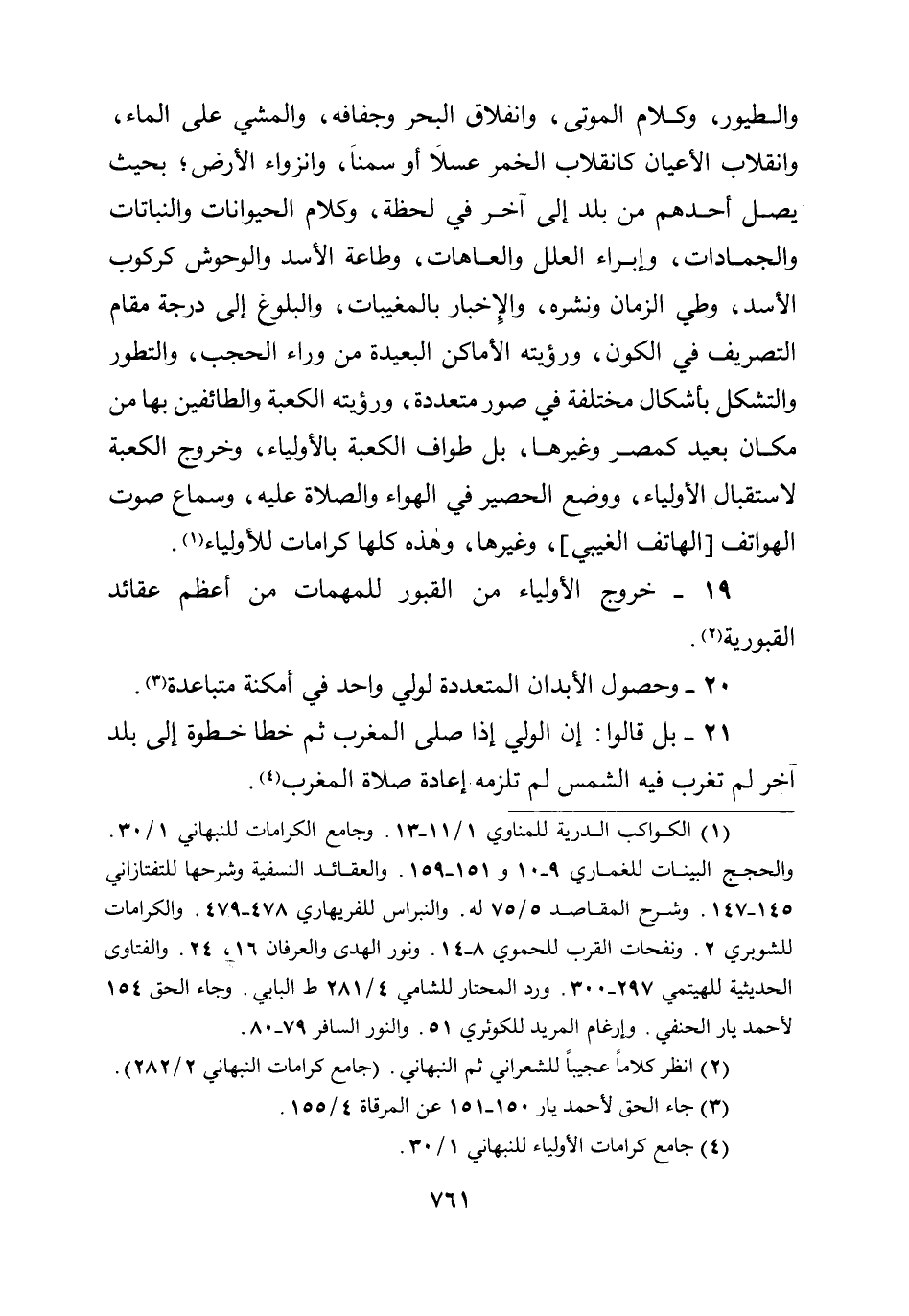 20 - وحصول الأبدان المتعددة لولي واحد في أمكنة متباعدة.