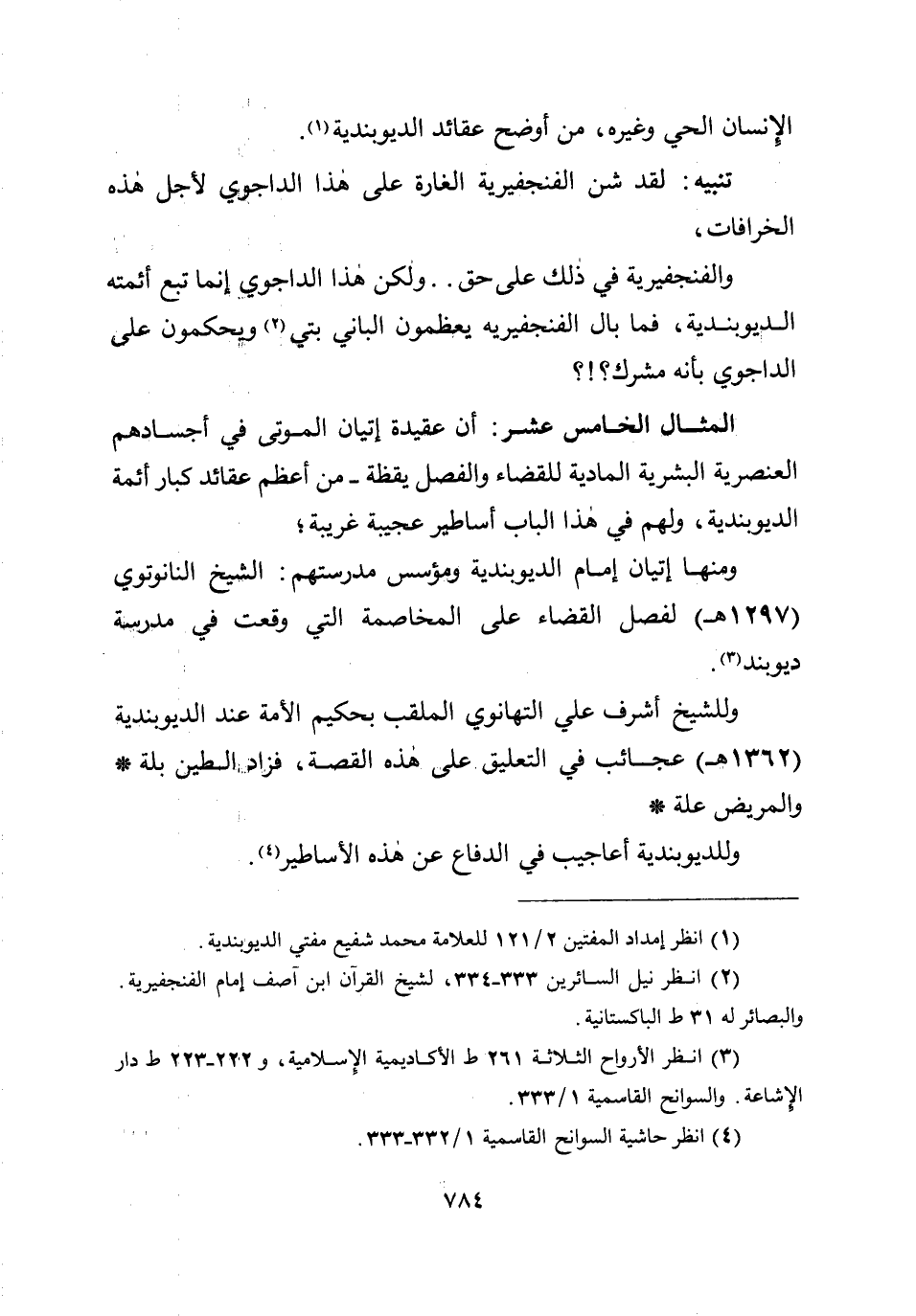 تنبيه: لقد شن الفنجفيرية الغارة على هذا الداجوي لأجل هذه الخرافات، والفنجفيرية في ذلك على حق.. ولكن هذا الداجوي إنما تبع أئمته الديوبندية، فما بال الفنجفيريه يعظمون الباني بتي ويحكمون على الداجوي بأنه مشرك؟!؟