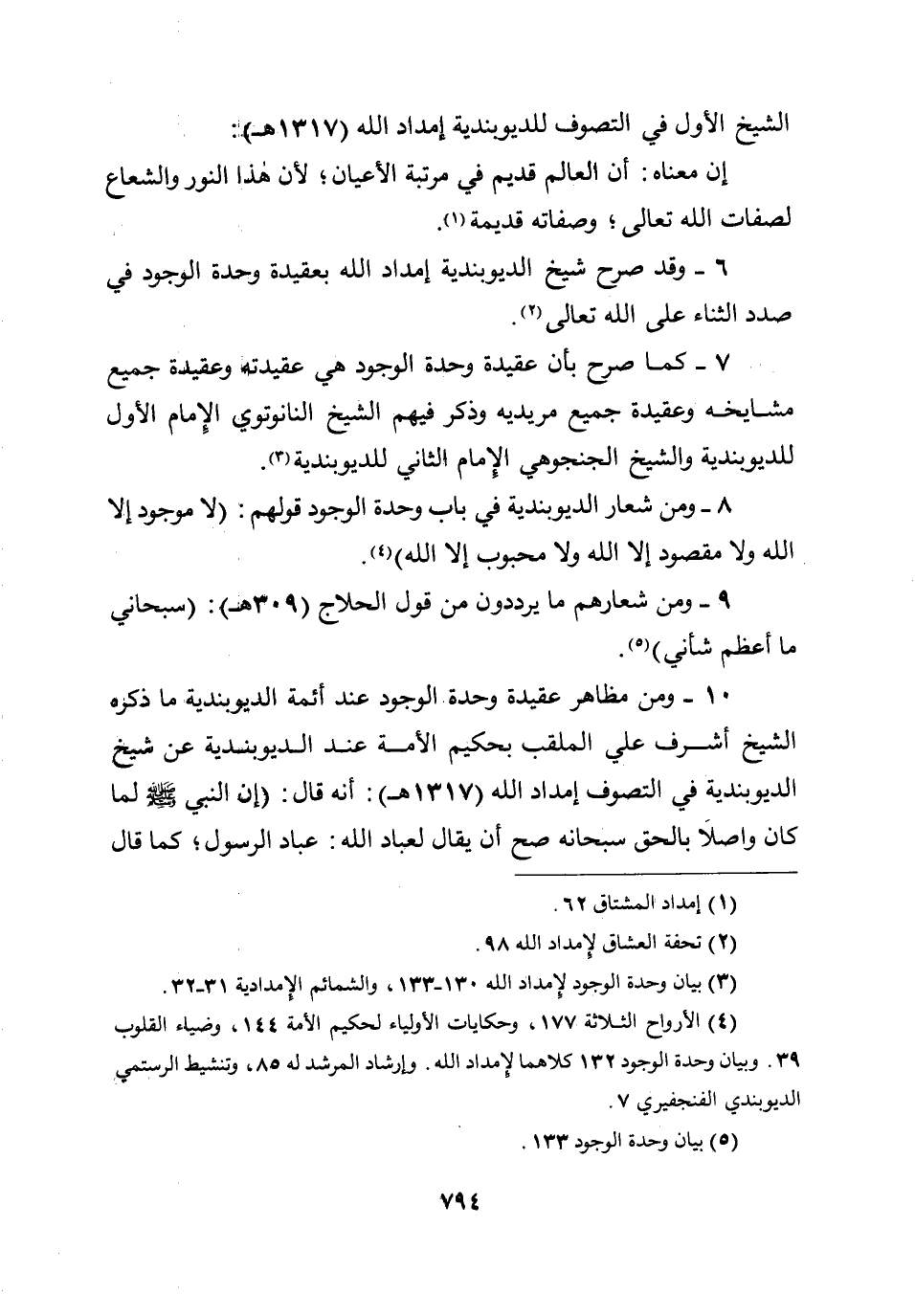 6 - وقد صرح شيخ الديوبندية إمداد الله بعقيدة وحدة الوجود في صدد الثناء على الله تعالى.