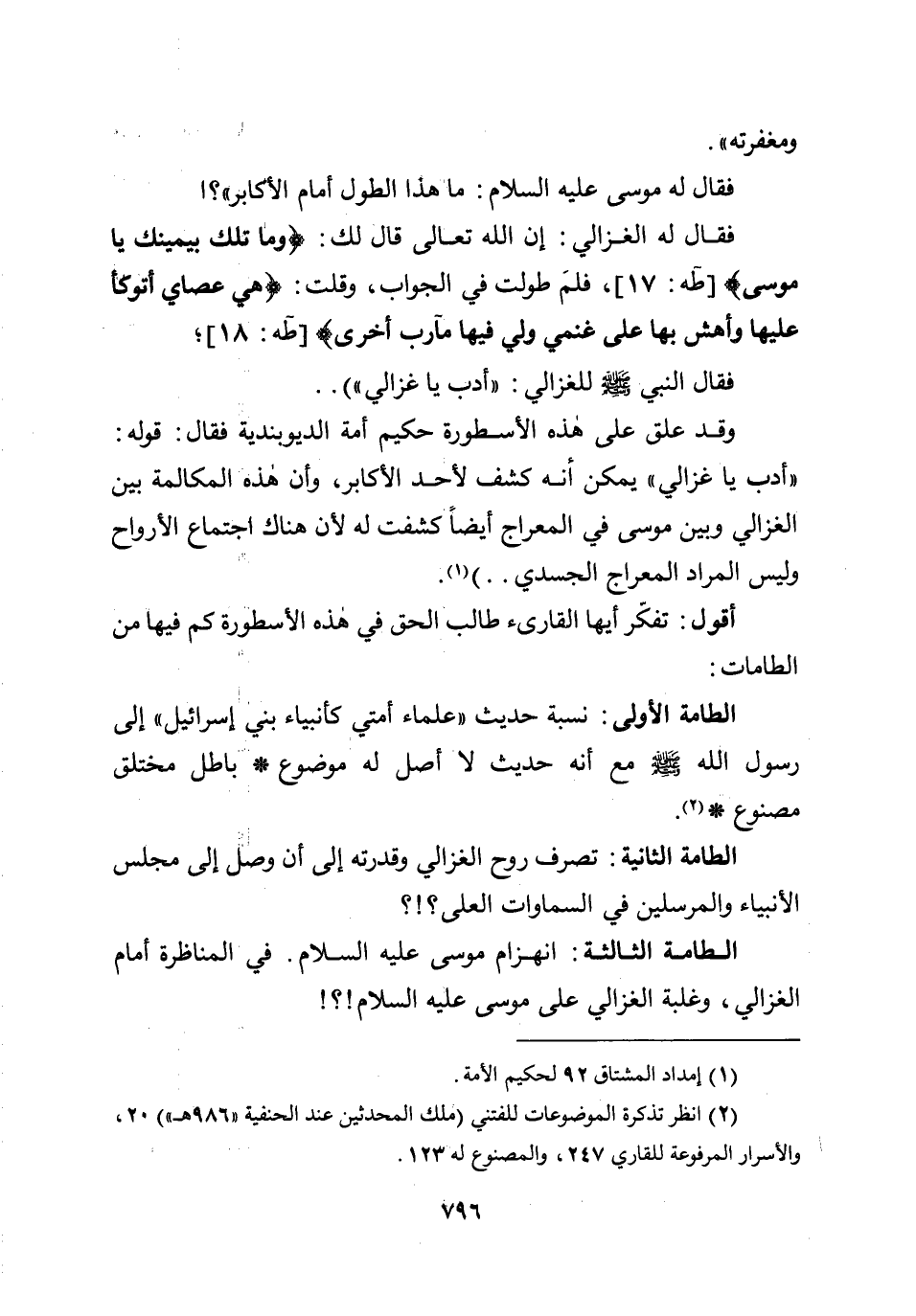 الطامة الثالثة: انهزام موسى عليه السلام. في المناظرة أمام الغزالي، وغلبة الغزالي على موسى عليه السلام!؟!