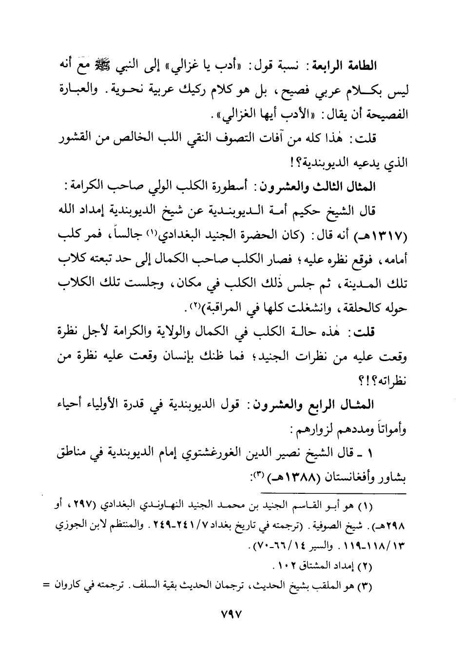 1 - قال الشيخ نصر الدين الغورغشتوي إمام الديوبندية في مناطق بشاور وأفغانستان (1388هـ) :