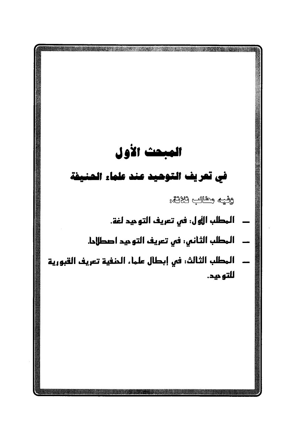 - المطلب الثالث: في إبطال علماء الحنفية تعريف القبورية للتوحيد.