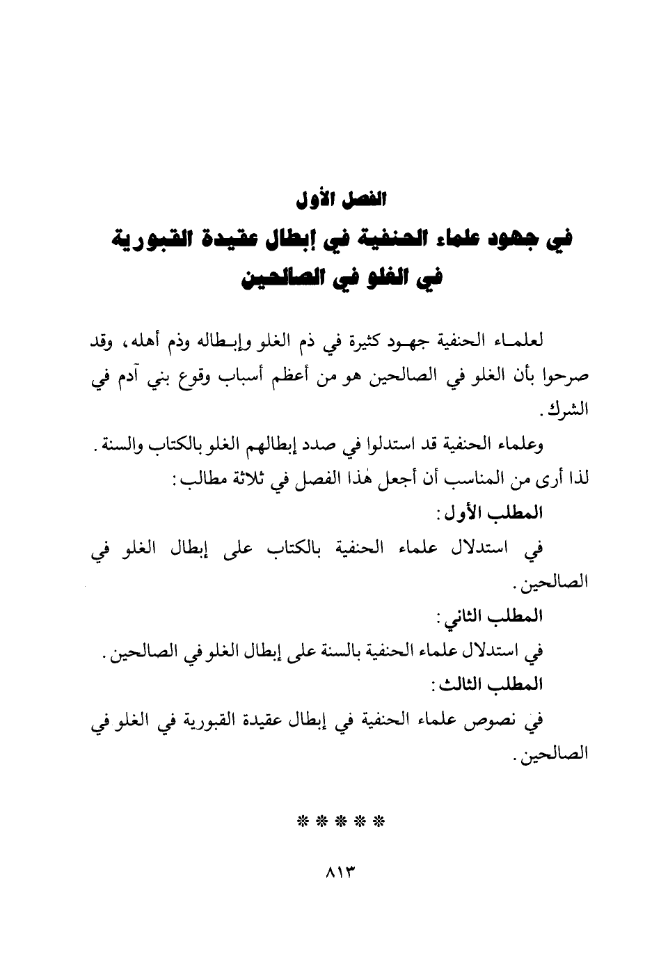 وعلماء الحنفية قد استدلوا في صدد إبطالهم الغلو بالكتاب والسنة. لذا أرى من المناسب أن أجعل هذا الفصل في ثلاثة مطالب: