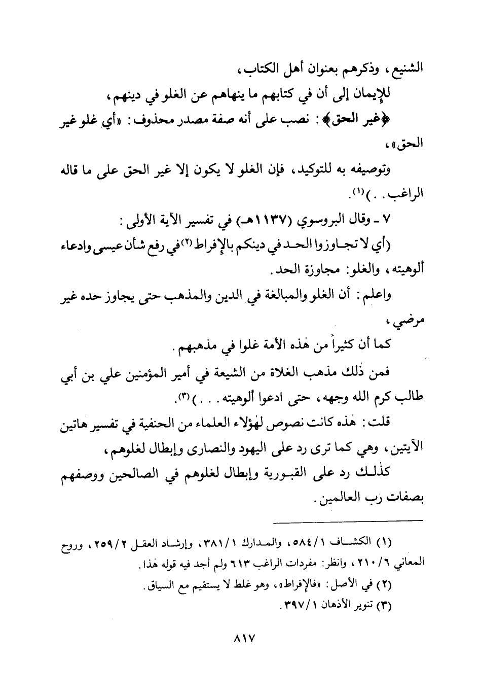 واعلم: أن الغلو والمبالغة في الدين والمذهب حتى يجاوز حده غير مرضي، كما أن كثيرا من هذه الأمة غلوا في مذهبهم.