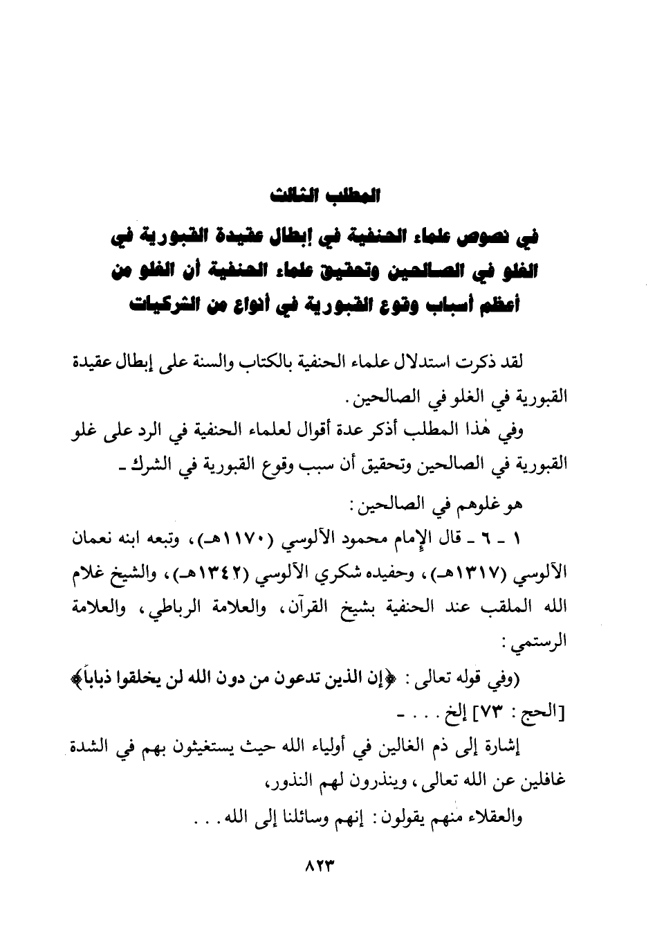 لقد ذكرت استدلال علماء الحنفية بالكتاب والسنة على إبطال عقيدة القبورية في الغلو في الصالحين.