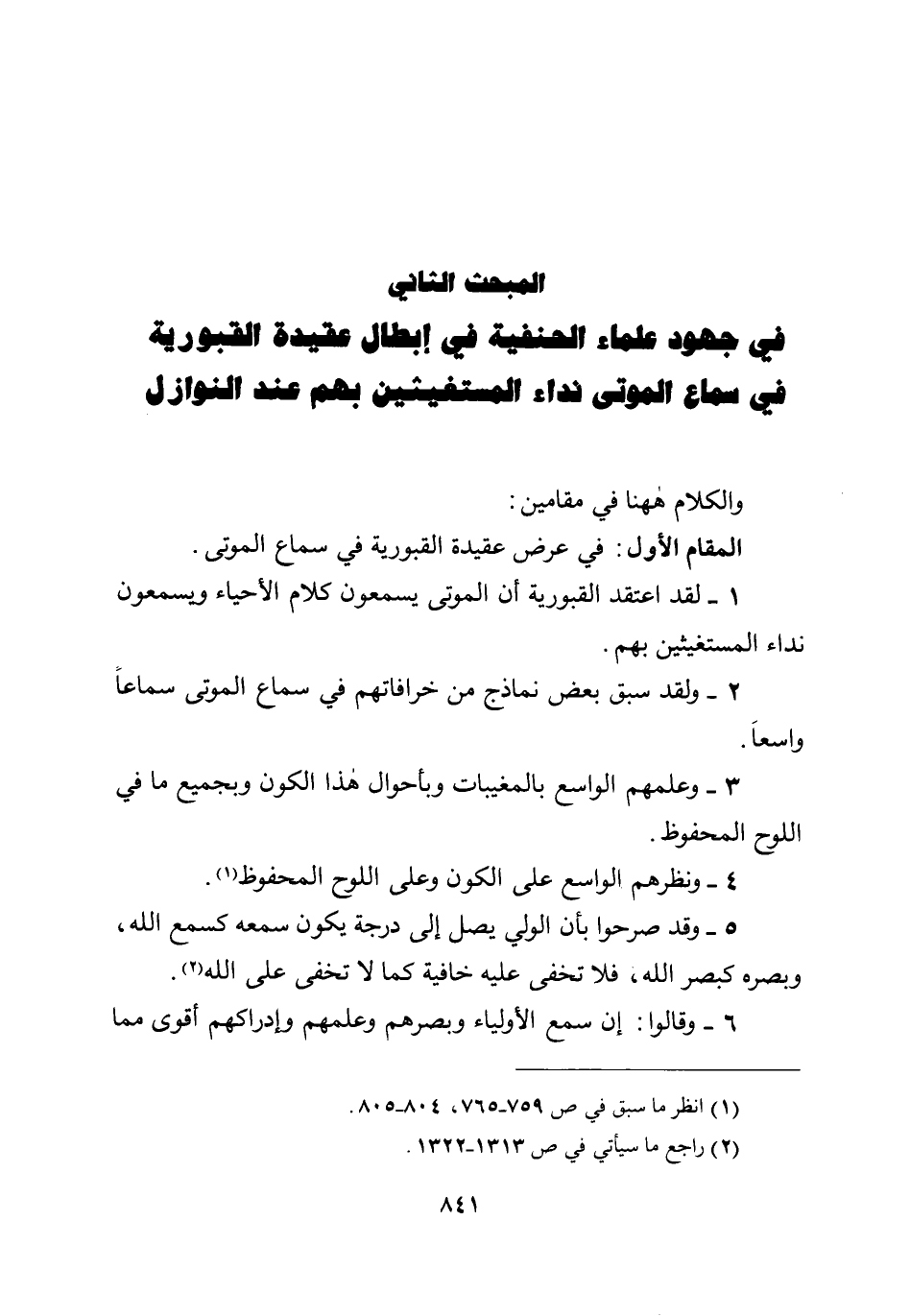 1 - لقد اعتقد القبورية أن الموتى يسمعون كلام الأحياء ويسمعون نداء المستغيثين بهم.