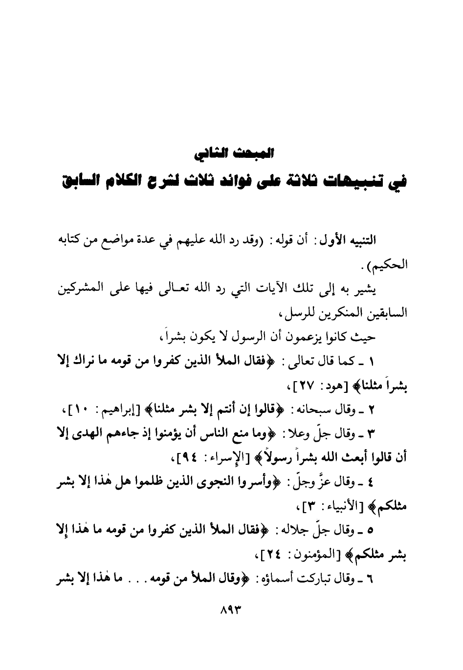 التنبيه الأول: أن قوله: (وقد رد الله عليهم في عدة مواضع من كتابه الحكيم) .